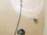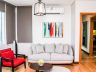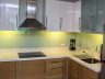 - Kitchen includes electric stove with hood and two-door refrigerator
