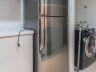 - Kitchen fitted with two-door ref, gas range with hood, microwave oven, and front load washer